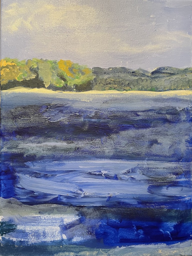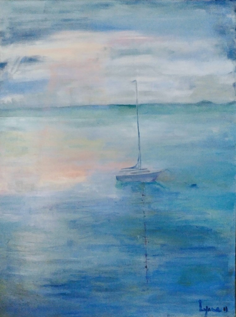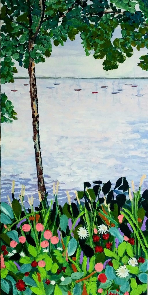 Sunset, Acrylic on canvas board, 18 x 24″The Yard. Acrylic on canvas, 16 x 12″Park Rene Levesque, Acrylic on Canvas, 8 x 10″Constance Bay, Acrylic on Canvas, 12 x 16″Walking Group, Acrylic on Canvas, 16 x 12″Amsterdam Landing, Acrylic on Canvas, 16 x 20″Blue boat, Acrylic on canvas, 36 x 48″Pointe Claire Yacht Club, Acrylic on Canvas, 24 x 48″Pointe Claire Village, Acrylic on Canvas, 9 x 12″,