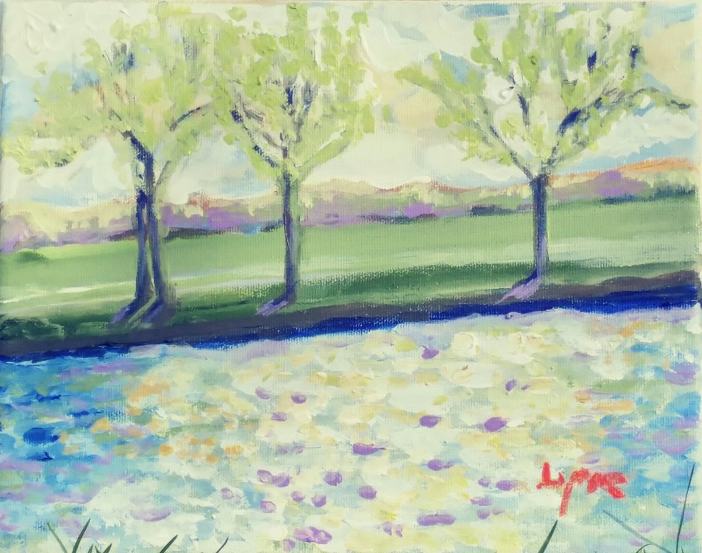 Sailboat with Pink, Acrylic on Canvas Board, 18 x 24″Evening Walk, Acrylic on Canvas, 16 x 20″