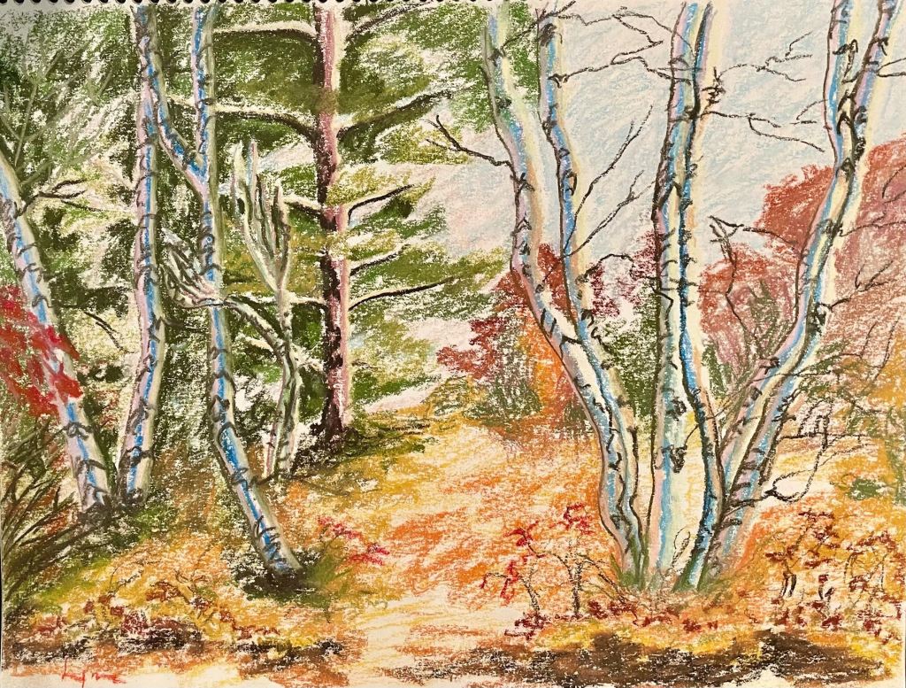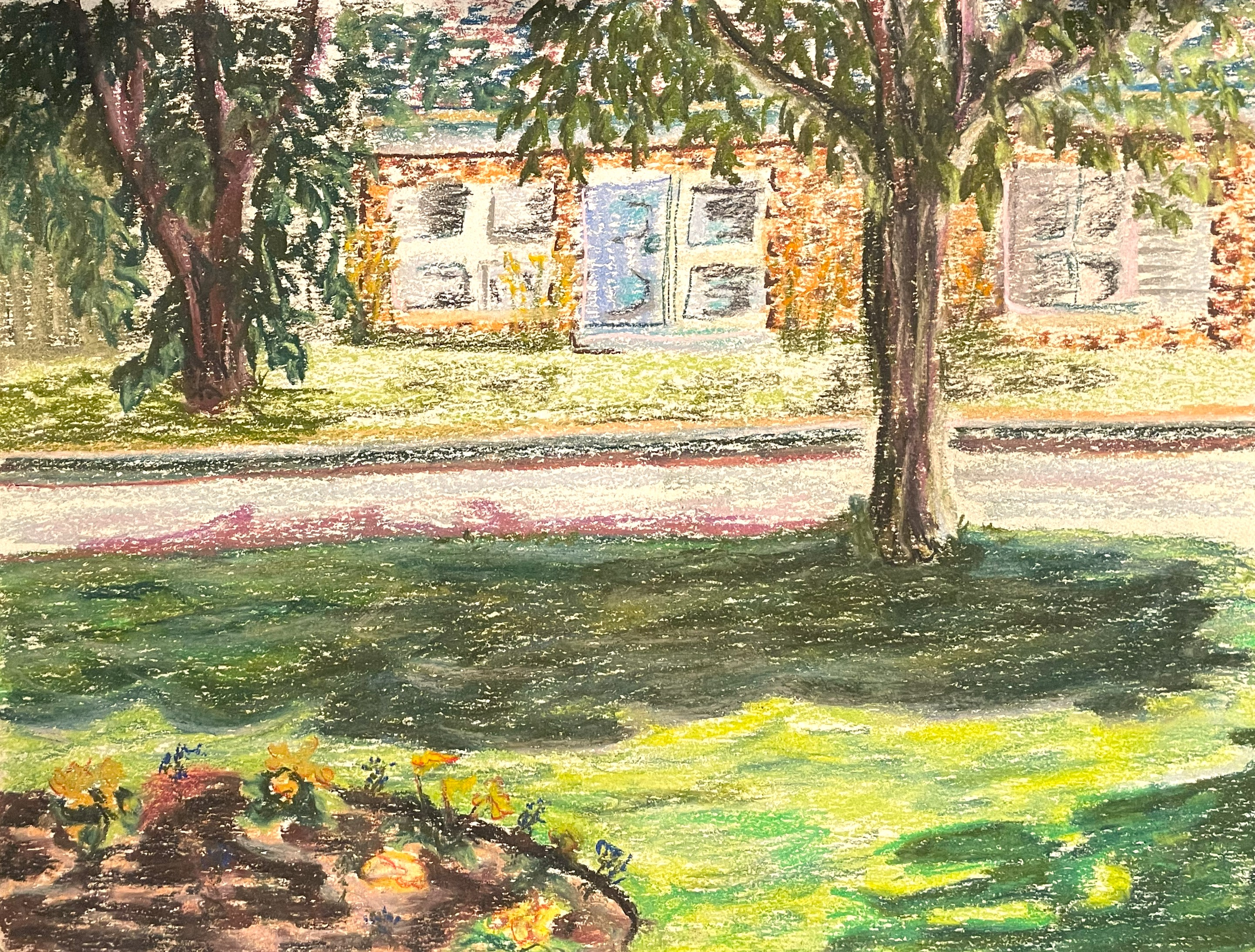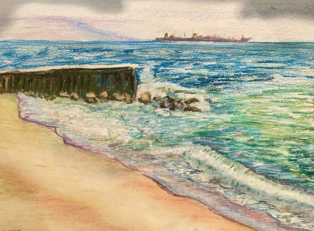 Illustrations Chalk Pastel Vivid works Park in Oakville Lady in Water L.A. Breakwater Across the Street Cottage Rowboat Cottage Forest Big Ship